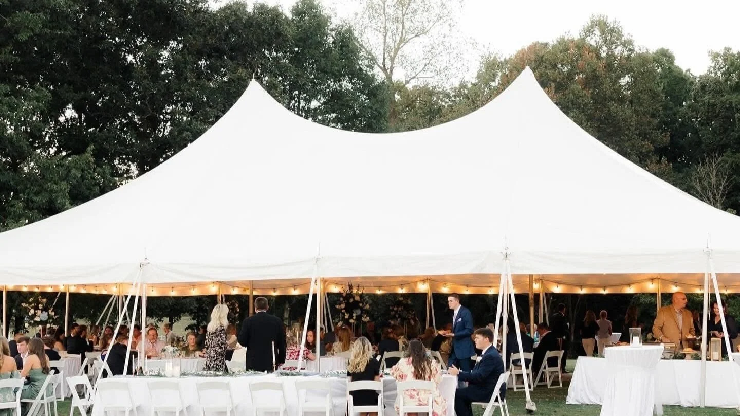 40x40 Tent: Ideal for intimate gatherings, this tent offers 1,600 sq ft of space, comfortably seating up to 128 guests. Perfect for small weddings, corporate meetings, or private parties.